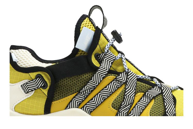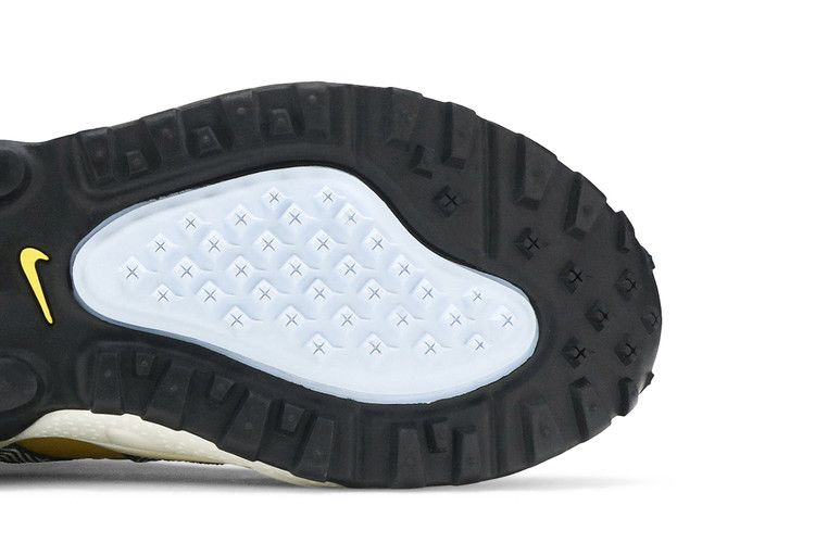 Кроссовки Nike Air Max 270 Bowfin 'Dark Citron', названные в честь рыбы с необычным цветовым рисунком, имитируют своего тезку с сетчатым, похожим на камуфляж рисунком в оттенках желтого, черного и серого на смешанном текстиле, вдохновленном трейлом. Кремовые накладки завершают цветовую гамму на промежуточной подошве Off-White, а эстетика тропы передается через систему шнуровки и износостойкую подошву.