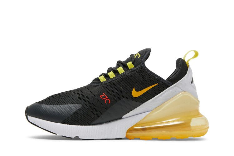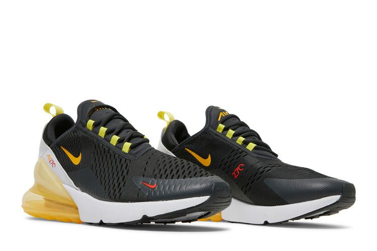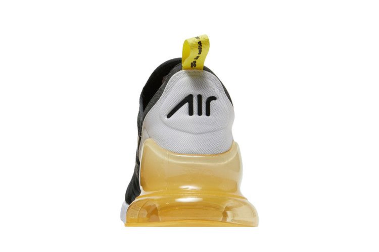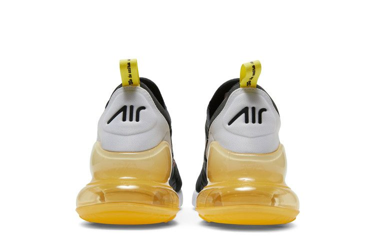 Модель Nike Air Max 270 "Go the Extra Smile" ярко-желтого цвета подчеркивает одноименную технологию амортизации бегунов. Расположенный под пяткой объемный блок Max Air работает в тандеме с мягкой белой подошвой Phylon. Верхняя часть выполнена из воздушной черной сетки с тональными накладками без швов и внутренним рукавом для плотной, поддерживающей посадки. Надпись "Go the extra smile" ("Улыбнись еще раз") нанесена на носочную часть, а на пятке прикреплена желтая тесьма.