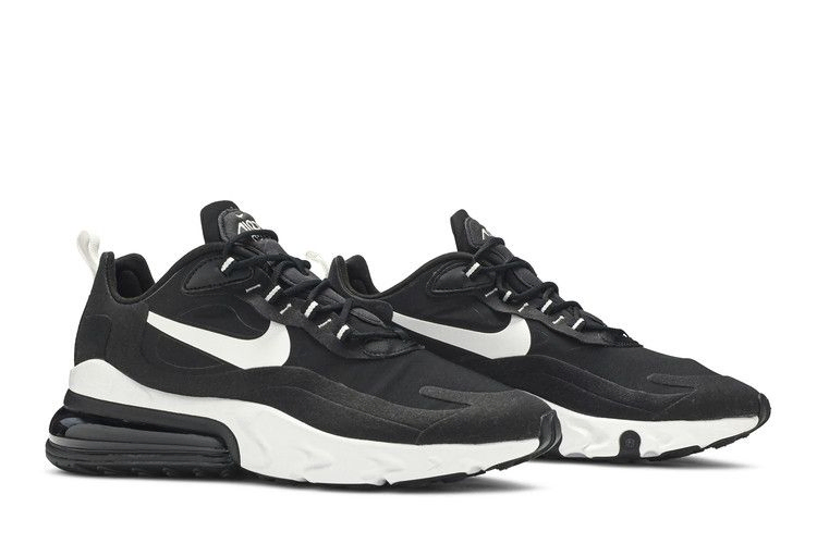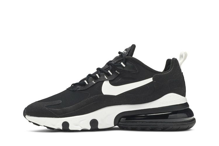 Nike Air Max 270 React "Black White" вышли в сентябре 2019 года с деталями в стиле панк-рок в составе пяти частей пакета, посвященного разной музыке. Кроссовки имеют эластичный, дышащий верх и двойные петли для подтягивания, что обеспечивает удобную посадку и комфорт, а на стельке красуется принт в виде выкупной ноты. Для легкого комфорта и оптимальной отдачи энергии кроссовки имеют накладки, напоминающие кожу, по периметру и межподошву из пеноматериала React с объемной амортизацией Max Air в пятке.