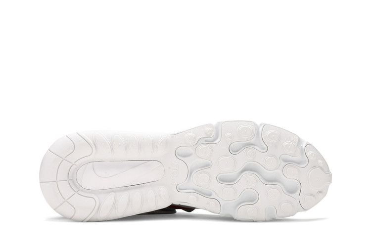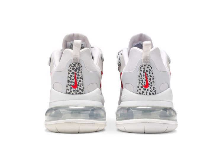Кроссовки Nike Air Max 270 React объединяют две революционные технологии в перспективном дизайне. Волнистый синтетический верх этой версии, представленный в октябре 2019 года, украшен вкраплениями Light Graphite на кожаных накладках и внутреннем рукаве из рипстопа. Смелый красный цвет украшает логотип Swooshes и вышитый логотип на языке. Соответствующая межподошва React включает в себя пузырь Max Air в пятке и располагается на прочной резиновой подошве.