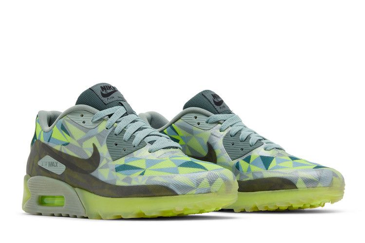 В 1990 году на свет появились культовые кроссовки Nike AM90. Разработанная Тинкером Хэтфилдом, эта версия кроссовок имела воздушное окно, которое было больше, чем у предшественников. Выпущенные в феврале 2014 года кроссовки Nike Air Max 90 Ice имеют полупрозрачный верх без швов, покрытый геометрическим принтом. На полупрозрачной подошве размещены промежуточная подошва из материала Phylon и видимый блок Air-Sole, а внизу - прочное сцепление с поверхностью.