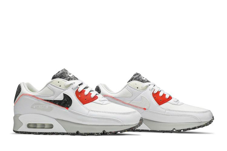 Модель Nike Air Max 90 M2Z2 "White Photon Dust", выпущенная как часть "Recycled Wool Pack", имеет верх из текстиля с покрытием, накладки из искусственной кожи и переработанного войлока на язычке и пятке. Чистота отделки дополнена ярко-малиновыми люверсами из TPU, а также зигзагообразной строчкой, которая тянется от пятки до медиальной части стопы. Разноцветные крапинки на вафельной подошве указывают на использование технологии Nike Grind, в которую входит резина, собранная с фабричных цехов.