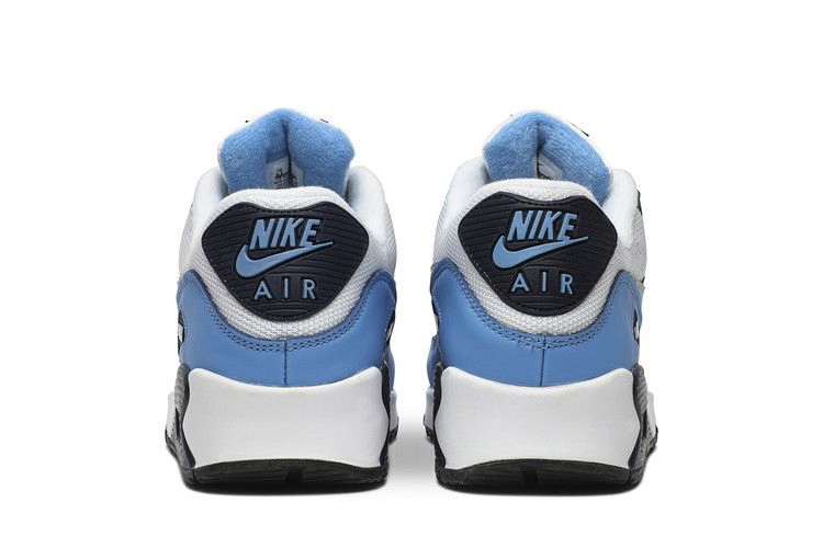 Появившиеся в июле 2019 года кроссовки Nike Air Max 90 'UNC' - это дань уважения альма-матер колледжа Майкла Джордана в командных оттенках. Кроссовки выполнены из белой сетки и двухцветной синей кожи с надписью Pure Platinum и разделенными по цвету отверстиями для шнурков. Логотипы на язычке, пятке и четвертных панелях повторяют цветовую гамму, вдохновленную джерси. Такая же палитра использована и на филоновой подошве и резиновой подошве кроссовок с поддержкой Max Air.