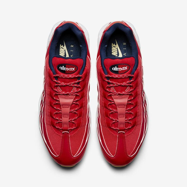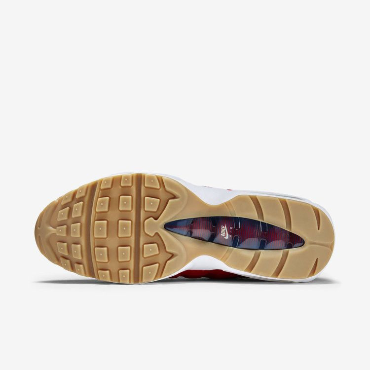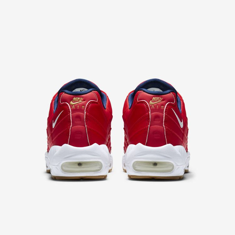 Выпущенная в рамках ежегодной акции Nike, посвященной 4 июля, версия классических Air Max 95 2015 года была выполнена в патриотическом цветовом решении: верхняя часть из красного университетского материала, внутренняя часть из полуночного военно-морского, с белыми акцентами по всему периметру. Среди других отличительных элементов - шнурки в крапинку с золотыми кончиками и подошва из резины.