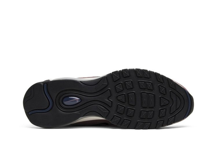 Первые в линейке кроссовок с полноразмерной системой амортизации Air Max, эти Air Max 97 имеют замшевую подошву цвета дымчатого марева и полуночного военно-морского флота, переходящую в черные сетчатые накладки в верхней части и на шнурках.