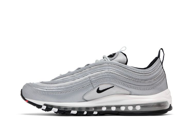 Выпущенные весной 2018 года кроссовки Nike Air Max 97 "Reflect Silver" напоминают знаменитую расцветку OG "Silver Bullet". Волнистый верх кроссовка выполнен из дышащих текстильных материалов и светоотражающих лент 3M, чтобы выделяться при слабом освещении. В нижней части кроссовка AM97 находится легендарный видимый блок Max Air, обеспечивающий такой же комфорт, как и в оригинале от дизайнера Кристиана Трессера.