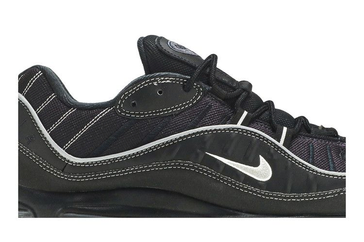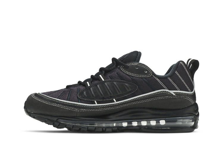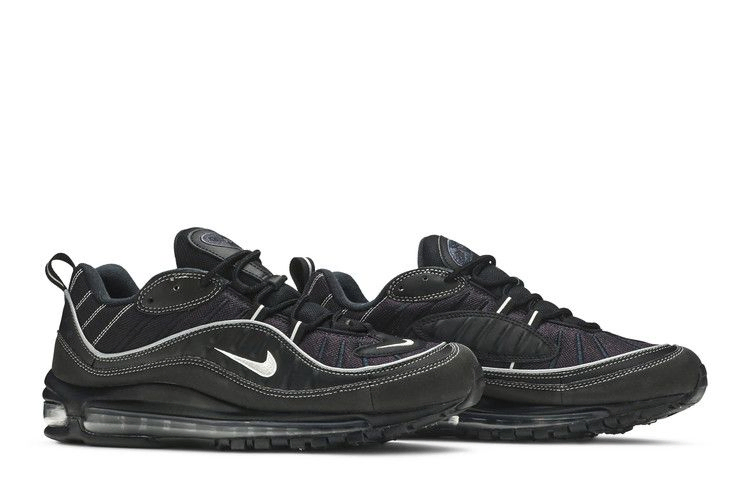 Модель Air Max 98 "Black Silver" от Nike, выпущенная в июне 2018 года, придает классической модели скрытый вид. Модель выполнена в тройном черном цвете и имеет черную сетчатую основу с кожаными накладками на брызговиках и наглазниках. Мерцающая серебристая подкладка опоясывает основу и дополняет простроченный брендинг Swoosh на носке и в средней части стопы. Светоотражающие элементы завершают образ, а полноразмерный блок Max Air и прочная подошва обеспечивают отзывчивость и сцепление с поверхностью.
