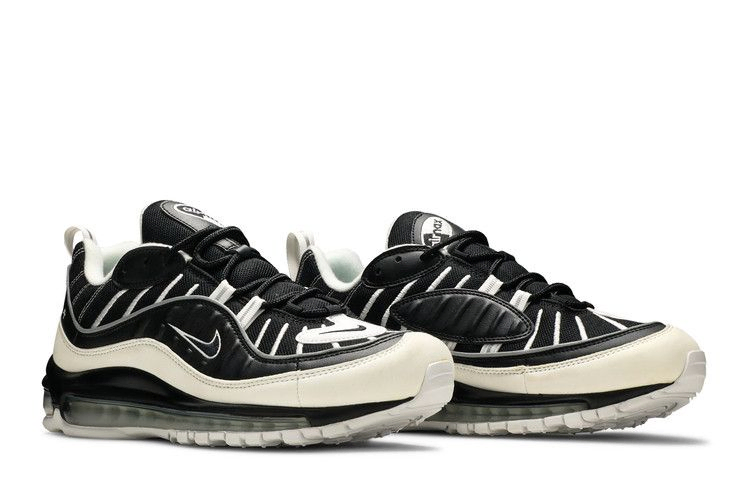 Модель Nike Air Max 98 "White Black" использует волнистые горизонтальные линии Air Max 97 и добавляет новые элементы, создавая уникальный дизайн, основанный на простом цветовом решении. Верхняя часть преимущественно черного цвета представляет собой комбинацию сетки и кожи, которая переходит в белый цвет для большинства акцентов, таких как брендинг, петли для шнурков, вертикальные полосы и накладка. Черный и белый цвета чередуются между промежуточной подошвой и подошвой, на которой размещена амортизирующая система Max Air.