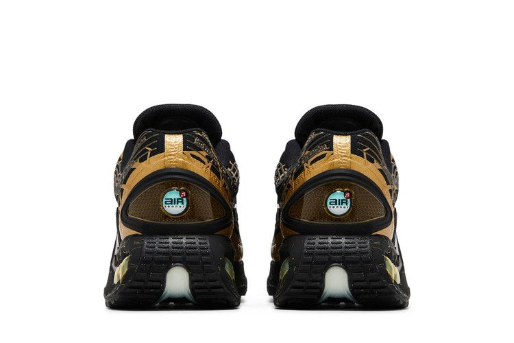 Nike Air Max DN "Doernbecher 2025" выполнены из вентилируемой черной сетки с металлическими золотыми акцентами. Наряду с вдохновляющими словами о радостях и трудностях жизни, верхняя часть украшена тиснеными музыкальными нотами из песни, которую дизайнер обуви Коннор Кассинг Фернандес написал вместе со своей сестрой. Золотые вкрапления покрывают черную межподошву из пеноматериала с четырехтрубной подошвой Air в пятке. Под ногами полупрозрачная светящаяся в темноте резиновая подошва с личным девизом Коннора - step by step - на английском и испанском языках.