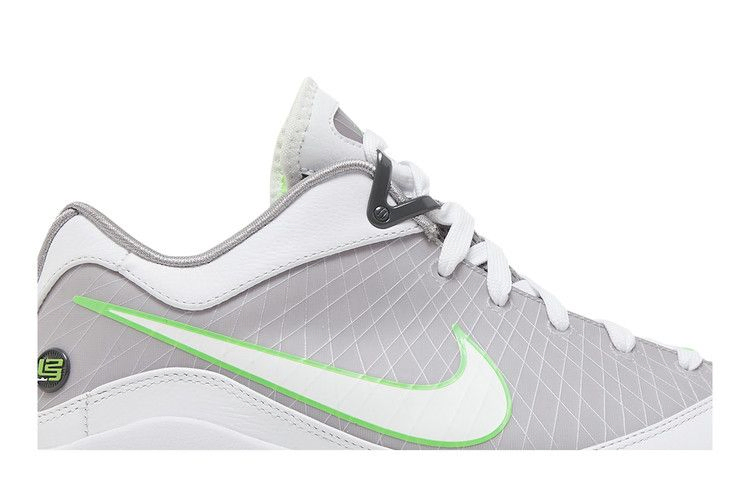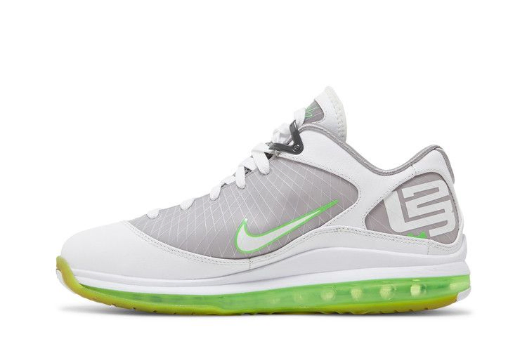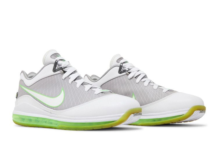 Модель Air Max LeBron 7 Low "Dunkman", выполненная в средне-серой и электрически-зеленой цветовой гамме, которая является визитной карточкой второй линии Леброна Джеймса, отличается полноразмерным 360-градусным блоком Max Air. Низкий верх также поддерживается частично полупрозрачной зеленой резиновой подошвой, а верхняя часть, выполненная из синтетики и кожи, укреплена рядом тросов Flywire.