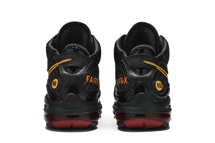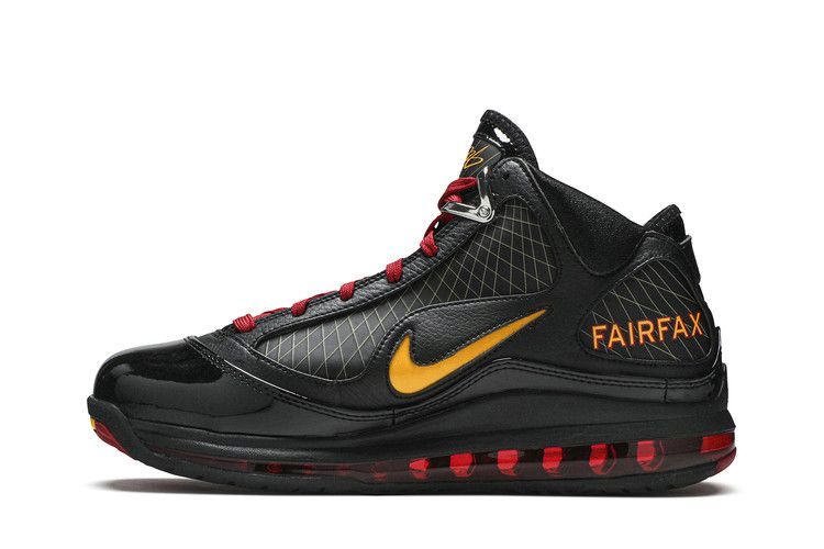 Изначально созданная в 2009 году для школы Fairfax в Лос-Анджелесе, модель Air Max LeBron 7 Retro "Fairfax" появилась в розничной продаже одиннадцать лет спустя. Седьмые фирменные кроссовки Леброна Джеймса имеют преимущественно черный верх, выполненный из глянцевой лакированной кожи, зернистой кожи и синтетики, подчеркнутый желтыми тросами Flywire и красным Swoosh, выделенным еще более желтым цветом. Верхняя часть опирается на первый баскетбольный 360-градусный модуль Max Air от Nike.