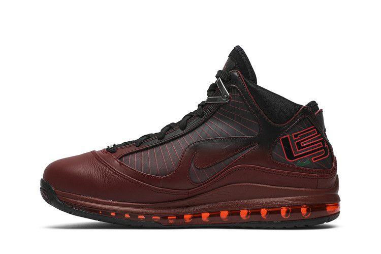 Выпуск 2019 года Air Max LeBron 7 Retro QS "Christmas" возвращает Леброна в рождественскую игру 2009 года против "Лейкерс" Коби Брайанта. Дизайн выполнен в точности с оригиналом: градиентная черно-красная расцветка верха из синтетики и кожи. Рождественская графика на носочной части, а также едва заметный зеленый оттенок логотипа L23 на медиальной пятке привносят праздничное настроение.