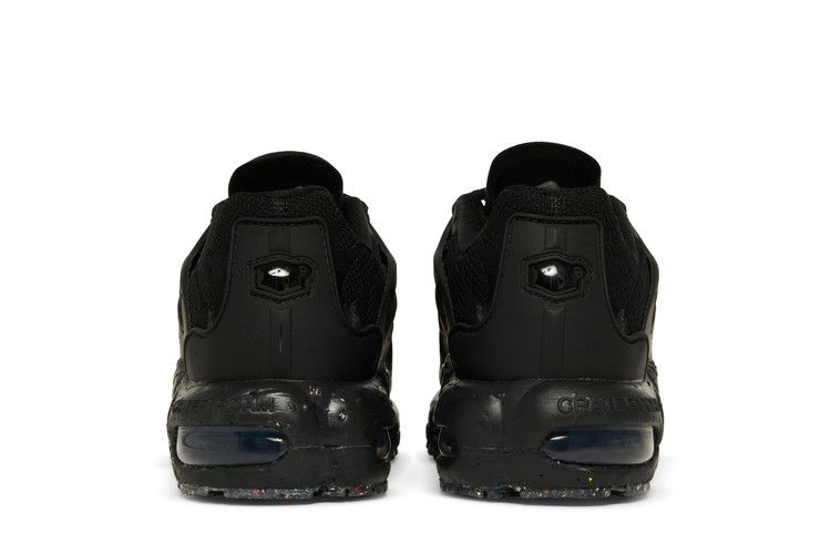 Кроссовки Nike Air Max Terrascape Plus 'Triple Black' изготовлены с использованием не менее 20% переработанных материалов по весу. Верхняя часть кроссовок имеет матовый черный каркас из TPU и дышащую сетчатую основу цвета антрацит. Кроссовки опираются на массивную черную промежуточную подошву Crater Foam, дополненную видимой амортизацией Air-Sole и заметным голенищем в средней части стопы, вдохновленным хвостом кита.