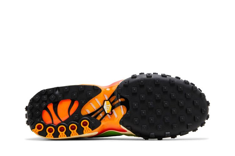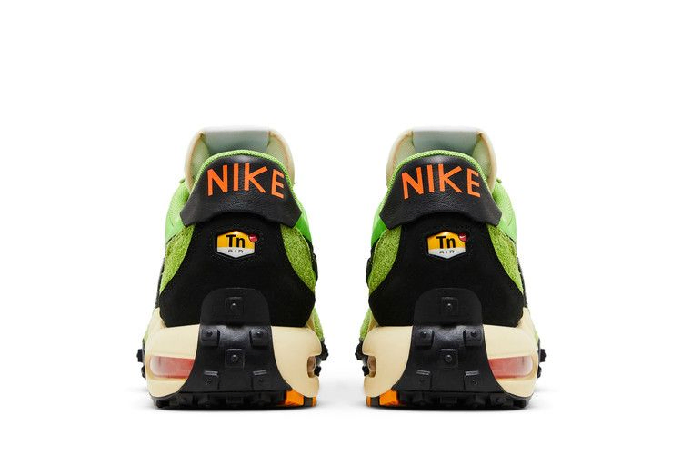 Nike Air Max Waffle Racer SP "Action Green" - гибридный силуэт, объединивший элементы дизайна Air Max Plus и Waffle Trainer. Нейлоновый верх выполнен в электрическом зеленом цвете и дополнен тональной ворсистой замшей в области глаз, передней части стопы и пятки. Контрастные черные акценты расположены на фирменном логотипе Swoosh и накладке на пятку из нубука с шестиугольным логотипом Nike Tn. Черная подошва из вафельной резины обволакивает полиуретановую подошву кремового цвета с оранжевой пластиной из TPU.