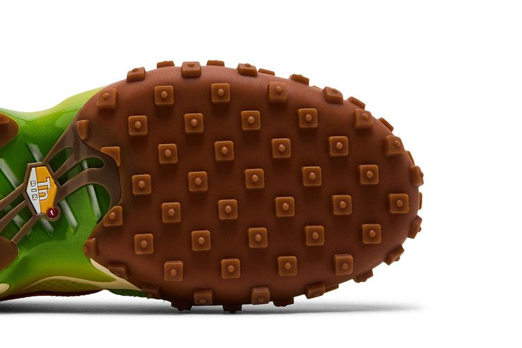 Nike Air Max Waffle 'Electrolime' - гибридный силуэт, основанный на культовом вафельном кроссовке. Желтый текстильный верх укреплен ворсистыми замшевыми накладками ярко-зеленого оттенка, а кожа цвета фуксии украшает фирменные логотипы Swoosh и задник Nike. Зеленая замшевая панель пятки, украшенная значком Tn Air, и полиуретановая подошва кремового цвета с заметной пластиной из TPU на хвостовике и амортизирующей подошвой Air позаимствованы у Air Max Plus.