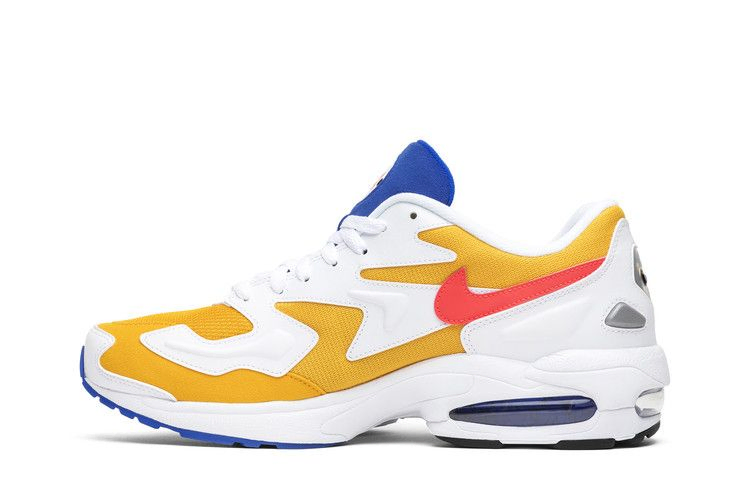 Nike Air Max 2 Light "University Gold" - это смелая расцветка, которая возвращает к истокам силуэта середины 90-х. Модель весит на одну унцию меньше, чем версия OG, и в январе 2019 года выпускается в сетчатой основе цвета University Gold, дополненной белыми кожаными накладками, Flash Crimson Swoosh и язычком Racer Blue. Легкая амортизация включает в себя Zoom Air в носочной части и заметный блок Air Sole в пятке.