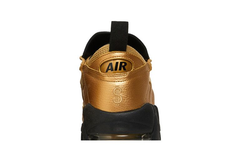 Модель Nike Air More Money 'Metallic Gold' сочетает в себе элементы Air Money и Aire More Uptempo - обеих баскетбольных кроссовок 1990-х годов - и создает сильный силуэт. Вдохновением для этой модели послужили золотые слитки. Верх из сетки и кожи цвета "металлик" с соответствующими смещенными петлями для шнурков. Фирменные детали включают фирменный знак доллара на пятке и смелую вышивку Swoosh и 'Air Money' вдоль крыла. Эта роскошная модель завершена увеличенной черной подошвой с видимыми золотыми блоками Air.