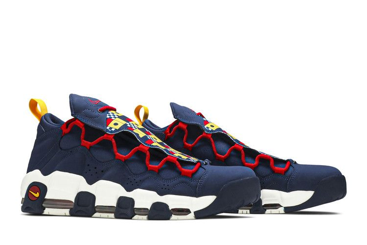 Nike обновляет смелые гибридные кроссовки 90-х годов в июле 2018 года, вдохновляясь темой парусного спорта. Вдохновленные коллекцией из трех кроссовок AF1 в июне 2018 года, кроссовки Nike Air More Money 'Nautical Redux' имеют замшевый верх цвета Midnight Navy с сетчатой подкладкой. Шнурки Gym Red фиксируют съемный плащ с классическим узором в виде шашечек, а желтые акценты украшают выступ и промежуточную подошву Swoosh. Под ногами - амортизирующая подушка Air.