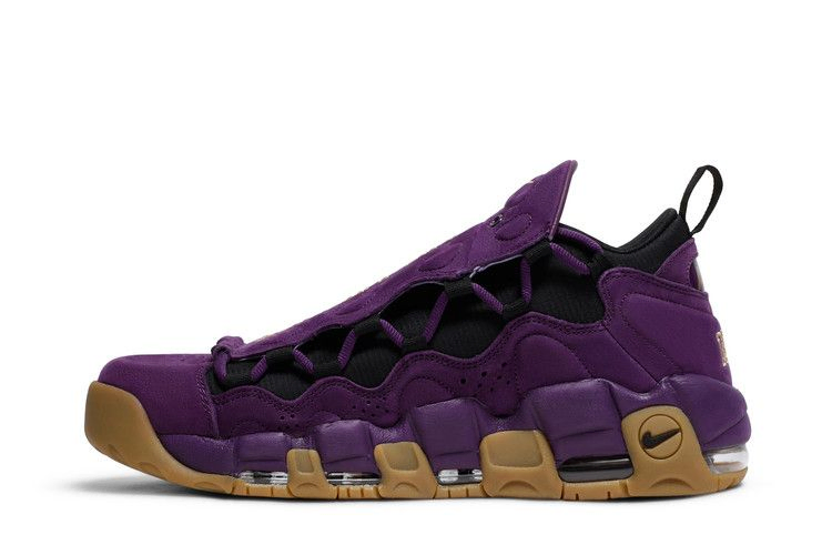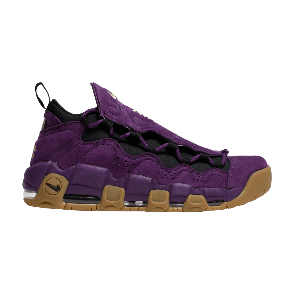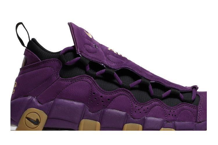 Впервые выпущенные в Токио в июле 2018 года, кроссовки Nike Air More Money 'Purple' (также известные как 'Purple Leopard') имеют верх из нубука насыщенного фиолетового цвета с контрастными золотыми акцентами. Знаковая особенность Air More Money - дополнительная пара шнурков с ярким леопардовым принтом. Сменные шнурки позволяют сочетать их между собой, создавая индивидуальный образ. Кроссовки с амортизацией Max Air от пятки до носка обеспечивают легкий комфорт.