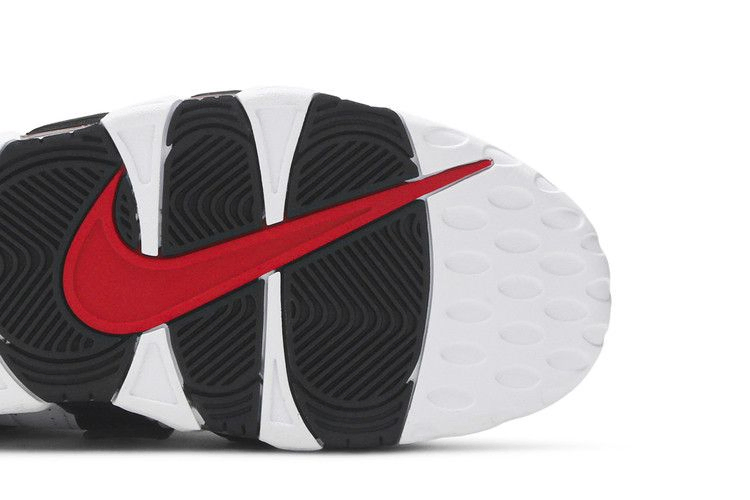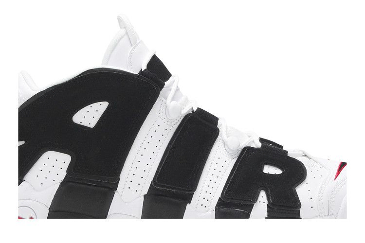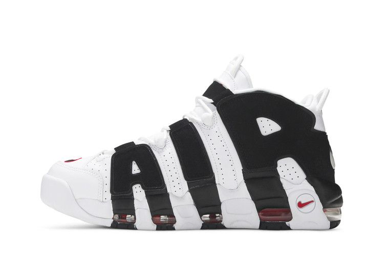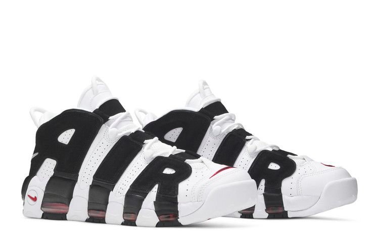 Выпуск 2020 года Nike Air More Uptempo 'Scottie Pippen' представляет ретро-раскраску кроссовок 90-х годов, прославленных Скотти Пиппеном. Первоначально выпущенные в 2017 году, они выполнены из белой перфорированной кожи с преувеличенным брендингом "AIR" на контрастном черном нубуке. На язычке пятки расположен не оригинальный логотип Скотти, который появился в 1997 году на фирменных Air Pippen 1.