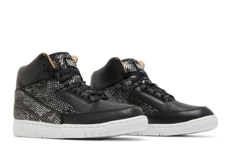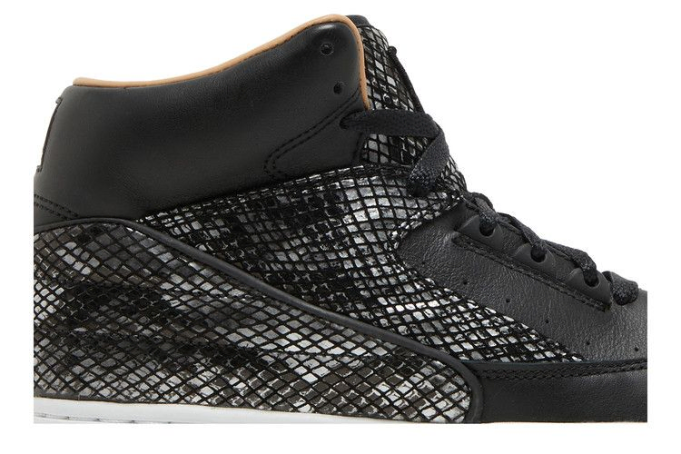 Кроссовки Nike Air Python Lux Sp, взяв за основу Air Jordan 2 и Air Force 2, создали двухцветные кроссовки с высоким верхом. Модель Air Python была выпущена в 1987 году - всего через год после модели AJ2 - и позаимствовала у нее роскошный рисунок змеиной кожи и дизайн без Swoosh. В этой версии верх белый, накладки из роскошной змеиной кожи и черная подошва.