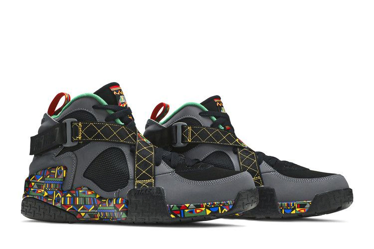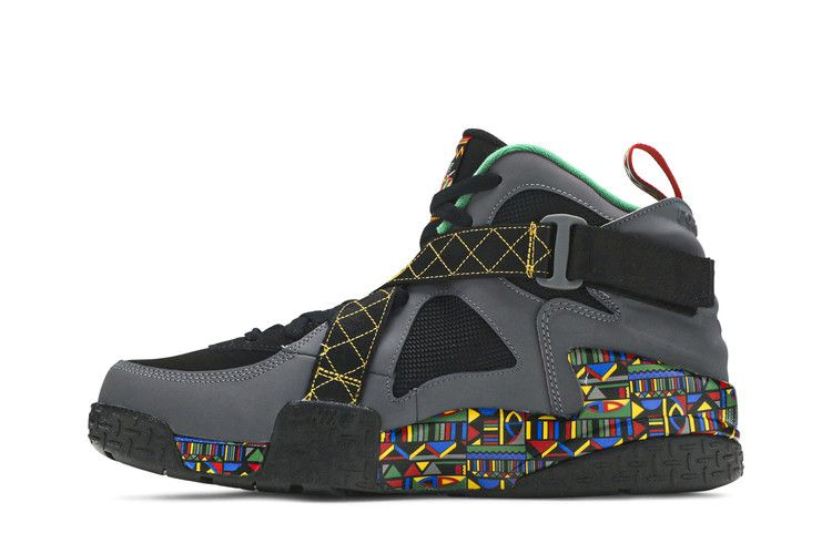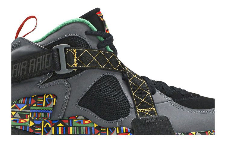 Модель Nike Air Raid "Urban Jungle", выпущенная в рамках проекта "Живем вместе, играем вместе", возвращает нас к расцветке OG, которая была первоначально выпущена в 1993 году. Черно-серый нубук составляет основную часть верха, а сетчатые панели на четверти обеспечивают улучшенную вентиляцию. Уникальный многоцветный принт выделяет межподошву, а контрастная желтая строчка и вышитый знак мира украшают фирменный ремешок кроссовка. На формованной пятке имеется надпись "Только для наружного использования", которая подтверждается сверхпрочной резиновой подошвой.