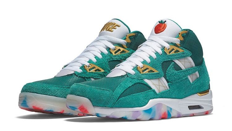 Nike Sportswear отпраздновал 20-летие Олимпийских игр 1996 года в Атланте специальным выпуском Nike Air Trainer SC High Atlanta '96 Olympics'. Вдохновленные цветами официального логотипа игр в Атланте, кроссовки со средним кроссом выполнены в тигровой расцветке с 3M-отражающей микроперфорацией из премиальной кожи и ворсистой замши. Вышитый золотой брендинг Nike украшает правый язычок, а на левом - персиковый логотип в знак уважения к штату Джорджия. Роскошные золотые люверсы и полупрозрачная подошва с многоцветной графикой конфетти завершают яркий образ.