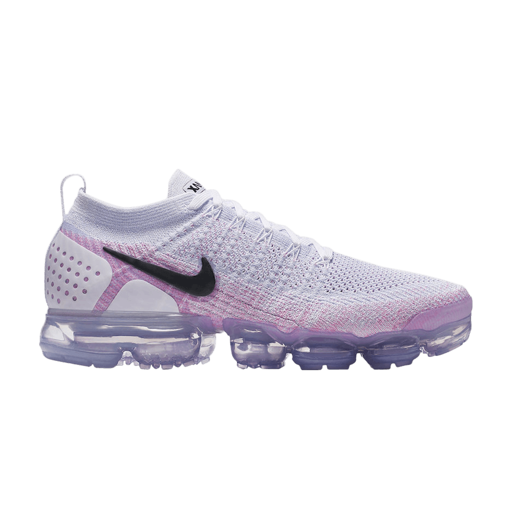 Как и предшественник, Air VaporMax 2 отличается беспрецедентным количеством воздуха под ногами. В этой расцветке, представленной в марте 2018 года, новаторская амортизирующая система сочетается с воздухопроницаемым верхом Flyknit, выполненным в пастельном оттенке Hydrogen Blue, который постепенно переходит в Pink Beam на нижней половине. Дополненные черным логотипом Swoosh и белой литой пяткой, кроссовки опираются на прозрачный блок VaporMax.