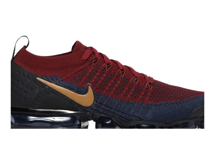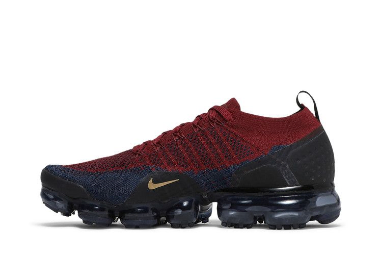Модель Nike Air VaporMax 2 Flyknit, выполненная в олимпийской цветовой гамме, имеет градиент бордового и темно-синего цветов по всей верхней части, что создает носочную форму. Кабели Flywire на заднике предназначены для фиксированной посадки и уменьшения раздражения передней части стопы. Амортизирующий блок VaporMax по всей длине наполняется давлением при ударе, а после подъема стопы освобождается, создавая отзывчивый ход.