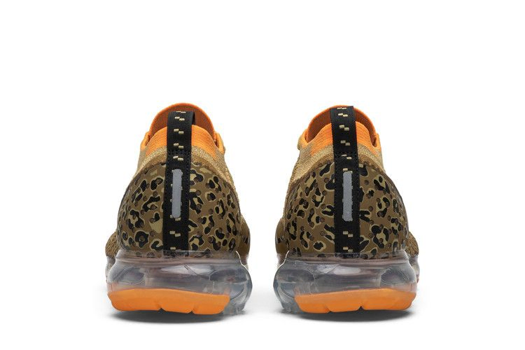 Модель Nike Air VaporMax Flyknit 2 "Leopard" получила дизайн в стиле дикой природы, подчеркнутый дышащим трикотажным верхом цвета темного загара с черным логотипом Swoosh и ярко-оранжевыми вставками на воротнике и язычке. Накладки на пятке, выполненные без швов, украшены леопардовым принтом, а на носочной части - фирменный принт Nike в виде сафари.