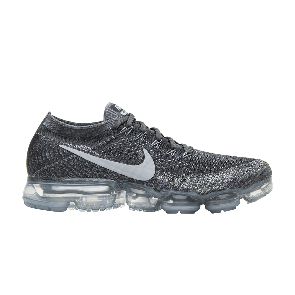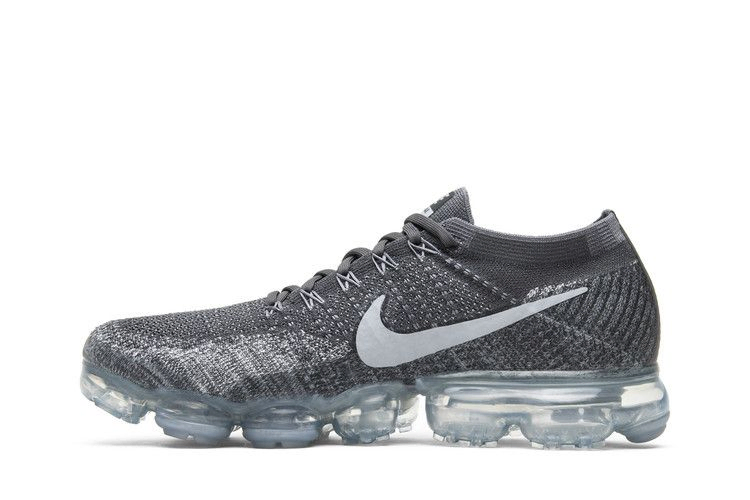 Модель Nike Air VaporMax 'Asphalt' имеет темно-серый верх Nike Flyknit с 3M-отражающим платиновым Swoosh. Выпущенные в апреле 2017 года, они также включают фирменную полноразмерную подошву Air VaporMax и тональные кабели Flywire.