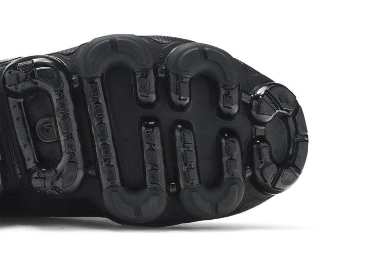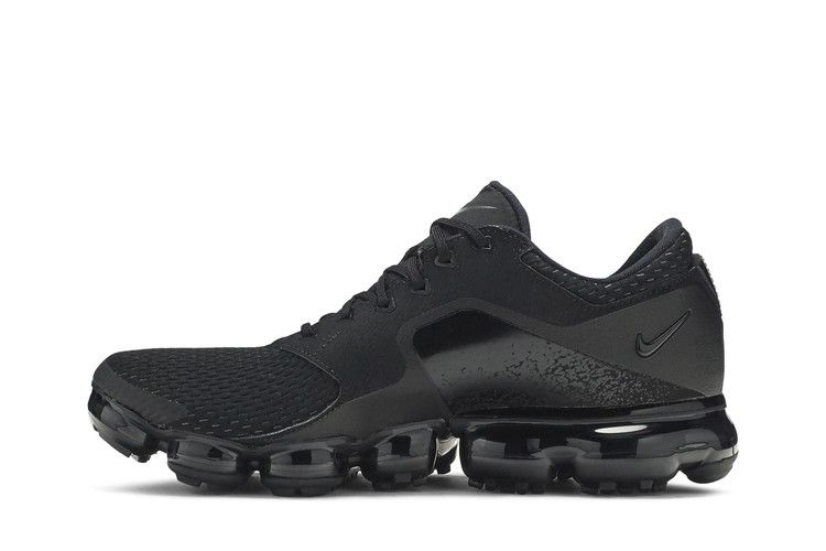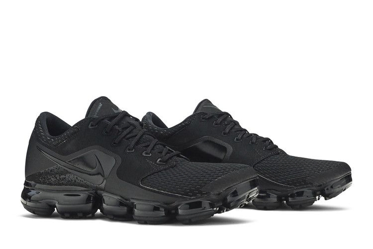 Отступая от традиционного дизайна VaporMax, Air VaporMax CS "Triple Black" отказались от привычного Flyknit в пользу комбинации сетки и кожаных панелей. На боковых панелях красуются полированные логотипы Nike и тональная графика, а амортизационный блок VaporMax остается верным оригиналу.