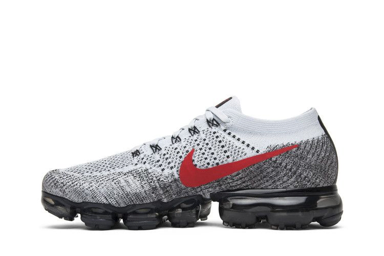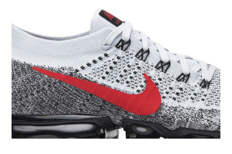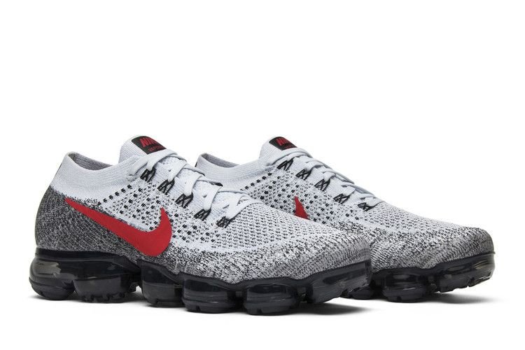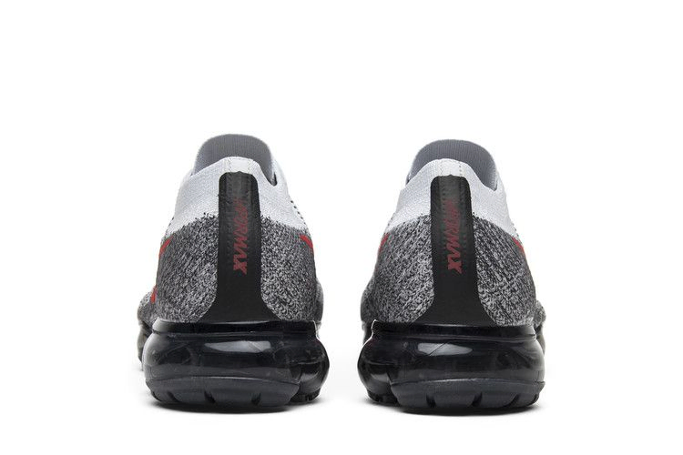 Кроссовки Nike Air VaporMax 'Heritage OG' вошли в декабрьскую коллекцию 2017 года, посвященную классическим расцветкам Air Max. В этом варианте верхняя часть кроссовок выполнена из материала Flyknit и имеет светло-серый цвет, переходящий в темно-серый у подошвы, а также ярко-красный Swoosh для контраста. Черная накладка на пятке, язычок и стелька украшены красным брендингом. Внизу - фирменная амортизация VaporMax, выполненная в темно-сером цвете.