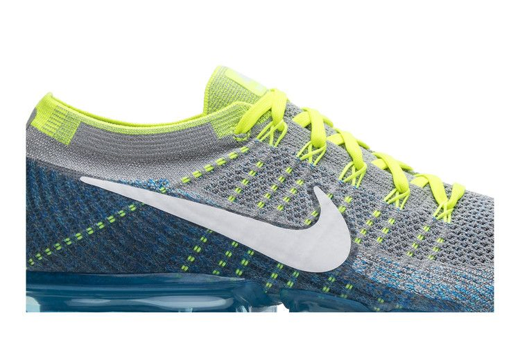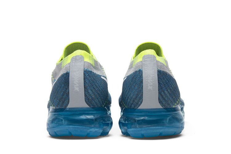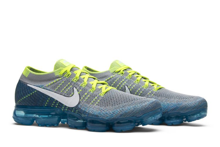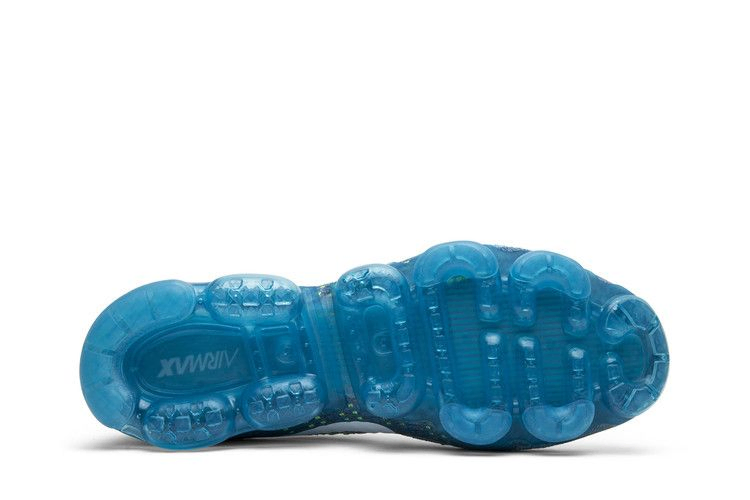 Nike Air VaporMax "Sprite" получили свое название благодаря сочетанию цветов Wolf Grey, Chlorine Blue и Volt в верхней части Flyknit, напоминающему о знаменитом прохладительном напитке. Дышащий трикотаж, украшенный белым логотипом Swoosh и вольтовыми тросами Flywire, установлен на платформе Nike VaporMax - отдельном блоке Max Air, который избавляет от необходимости использовать традиционный слой пены.