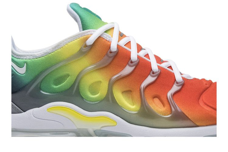 Модель Air VaporMax Plus "Retuned Air" отсылает к альтернативному названию Air Max Plus - TN (сокращение от Tuned Air). Хотя эта модель в основном известна своим уникальным верхом, подчеркнутым градиентной окраской и накладками из TPU, она также предлагает более стабильную платформу Max Air. Оба аспекта Air Max Plus радикально переработаны в этой гибридной модели, которая демонстрирует яркую призму цветов на литом синтетическом верхе и VaporMax под ногами.