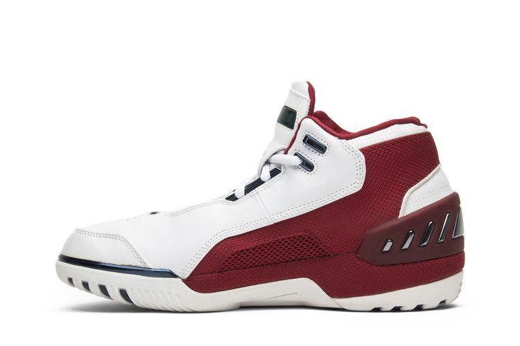 Air Zoom Generation '1st Game' - это первая расцветка дебютной фирменной обуви ЛеБрона Джеймса для Nike. Леброн надел эти кроссовки на свой первый домашний матч в НБА 11-5-2003 года, и в память об этой дате она вшита во внутренний воротник кроссовок. Белая кожаная основа кроссовка контрастирует с малиновыми оттенками на сетчатых панелях и пятке, а акценты Midnight Navy на промежуточной подошве и язычке завершают цветовую палитру, вдохновленную командой. Амортизация Zoom Air обеспечивает легкую амортизацию, а модифицированный рисунок сцепления "елочка" обеспечивает отличное сцепление на площадке.
