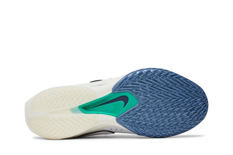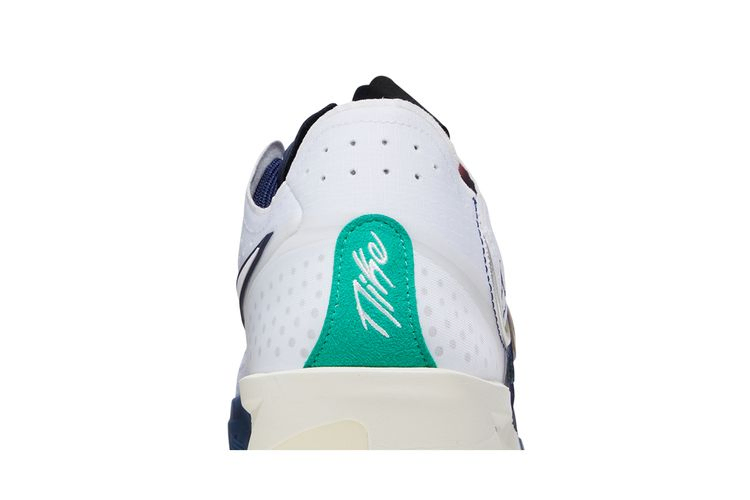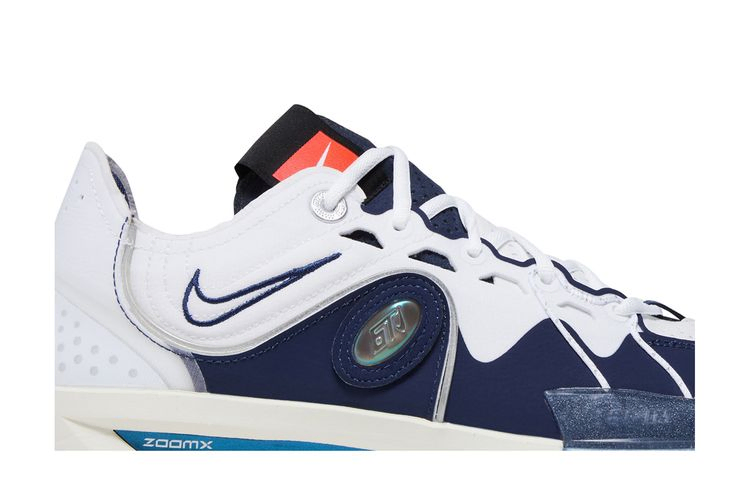 Модель Nike Air Zoom GT Cut 3 'Air Zoom Flight 5', выпущенная в рамках программы Nike 2024 NBA All-Star, вдохновлена ретро-обувью 90-х годов. Верхняя часть из легкой смеси текстиля и синтетических материалов выполнена в хрустящем белом цвете. Боковая сторона покрыта синими панелями из нубука и украшена переливающимся стручком с тисненым брендингом GT. Кроссовки опираются на легкую подошву из вспененного материала ZoomX и поддерживаются подошвой из резины, сцепляющейся с поверхностью "елочка".