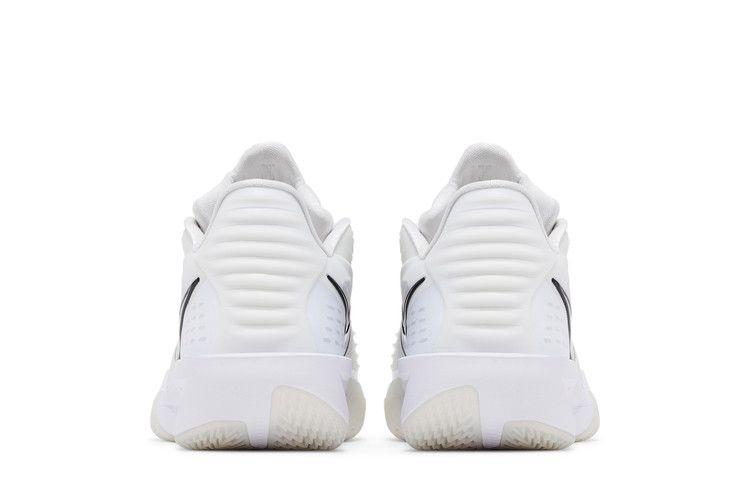 Кроссовки Nike GT Cut 3 Turbo "White Metallic Silver" с белым верхом, выполненным из синтетических и текстильных материалов. Черная окантовка и серебристый металлический Swoosh украшают четверть кроссовка. Амортизационная система представлена полноразмерной подошвой из пеноматериала ZoomX, оснащенной пластиной из углеродного волокна для повышения устойчивости. Под ногами полупрозрачная резиновая подошва с модифицированным рисунком "елочка" для разнонаправленного сцепления.