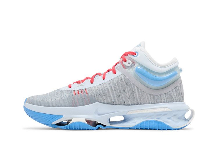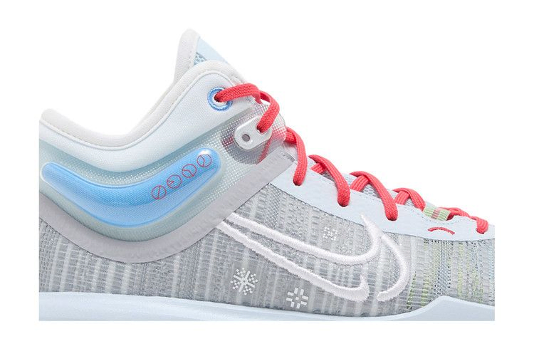 Кроссовки Nike Air Zoom GT Jump 2 "Christmas" имеют дышащий сетчатый верх в серых и приглушенных синих тонах. Несочетаемые красные и зеленые шнурки подчеркивают тематику праздника. В качестве подошвы используется легкая межподошва из материала Phylon, а также амортизирующая подушка Zoom Air в носочной части и упругая пена React в пяточной части. Резиновая подошва University Blue с обновленным рисунком сцепления "елочка" обеспечивает сцепление с твердым покрытием во всех направлениях.- Артикул: DJ9431-002