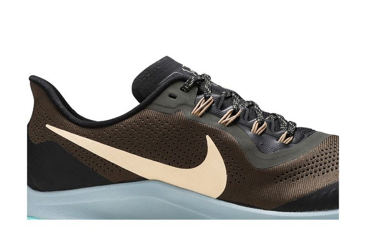 Nike Air Zoom Pegasus 36 Trail "Cargo Khaki" дебютировали в июне 2019 года как беговые кроссовки для горных районов и продолжение культовой линейки Pegasus. Эта модель имеет перфорированный верх из сетки и синтетики с накладками на люверсах, носке и пятке для долговечности. Амортизация цвета Ocean Cube обеспечивает комфорт благодаря двойным воздушным блокам Zoom Air и пеноматериалу Cushlon. Резиновый протектор на подошве обеспечивает сцепление с поверхностью.