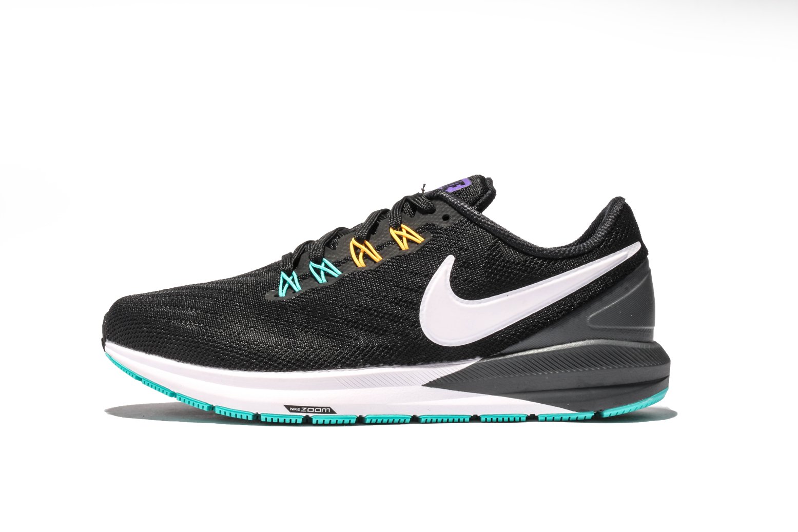 Кроссовки для беги Air Zoom Structure 22 в тёмной цветовой гамме Dark Grey с цветными элементами. Выпущены в мужской размерной сетке.- Цвета: Black/White-Dark Grey