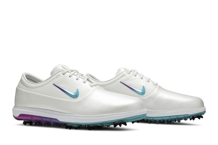 Nike Air Zoom Victory Tour NRG 'Gradient Pack' обновляет минималистичные кроссовки для гольфа с уникальным эффектом выцветания Swoosh и полупрозрачной подошвой с интегрированным рисунком сцепления под мячом стопы и съемными шипами на боковой стороне и пятке. Верх из белой кожи премиум-класса закреплен вощеными шнурками и установлен на межподошву из пеноматериала React, а амортизирующие свойства усилены блоком Zoom Air в передней части стопы.