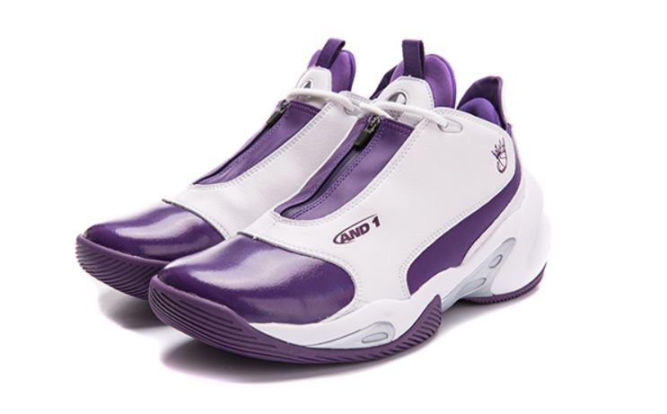 Баскетбольная модель средней высоты кроссовок AND1 THE K GENE MID в светлой расцветке с фиолетовыми элементами.- Цвета: Purple