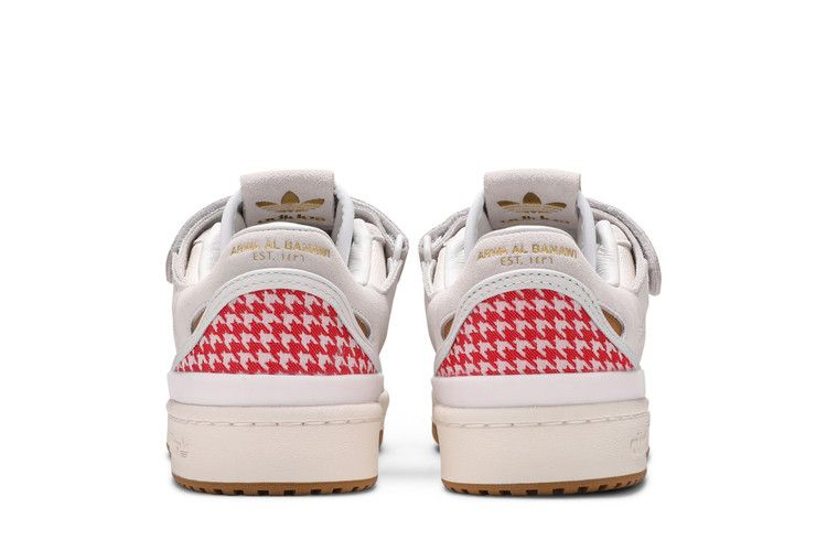 Модель Arwa Al Banawi x adidas Forum 84 Low 'Capra', созданная в сотрудничестве с дизайнером из Саудовской Аравии, отмечает Международный женский день эклектичным дизайном, сочетающим в себе влияние Востока и Запада. Регулируемый ремешок на щиколотке фиксирует верхнюю часть, выполненную из воздухопроницаемого белоснежного текстиля с тональными замшевыми накладками. Накладка на пятку украшена красно-белым принтом "хаундстут". Золотистый металлик украшает язычок с трилистником и надпись "Arwa Al Banawi" на заднем воротнике. На боковой стороне золотой арабской каллиграфией выведено слово "Capra", которое переводится как "семья горных козлов" - напоминание о необходимости бережного отношения к природе и заботы об окружающем мире. Кроссовки стоят на стандартной резиновой подошве с клином из EVA на медиальной стороне и сцепляющейся с поверхностью резиной под ногами.