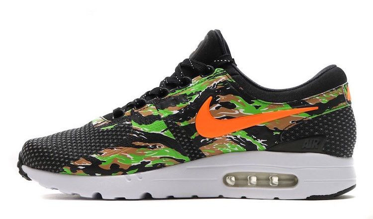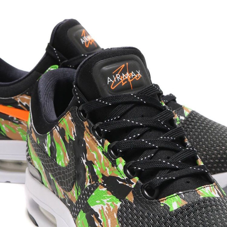 Лимитированная серия Air Max Zero "Tiger Camo", созданная в сотрудничестве NikeID и atmos, вдохновлена пакетом Air Max 1 "Animal Camo" 2013 года. Черная основа кроссовок покрыта камуфляжными накладками и змеиной кожей Swooshes на контрастной белой подошве Air Max. Дизайн был выпущен вместе с соответствующей одеждой и еще одной расцветкой "Сафари", вдохновленной животными, эксклюзивно в магазине Atmos Lab Pop Up Store в Японии в течение 2017 года.