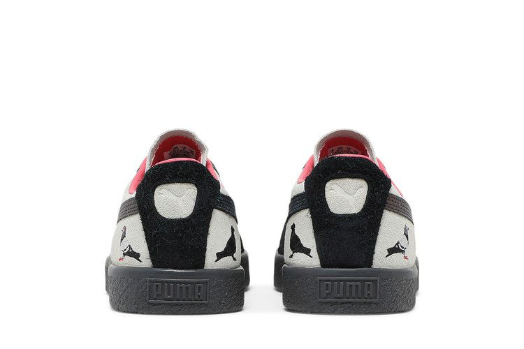 Модель atmos x Jeff Staple x PUMA Suede 'Pigeon and Crow' обновляет классический низкий топ с верхом из замши цвета загара и угольно-серыми акцентами на заднике и шнурках. На боковой пятке кроссовка изображен голубь, представляющий Нью-Йорк, а на противоположной стороне - черная ворона, указывающая на Токио. Несочетаемые полоски формы соответствуют каждому виду птиц. Логотипы Staple и Atmos выбиты темно-розовым цветом на язычке, а также на подкладке воротника и стельках с двумя логотипами.
