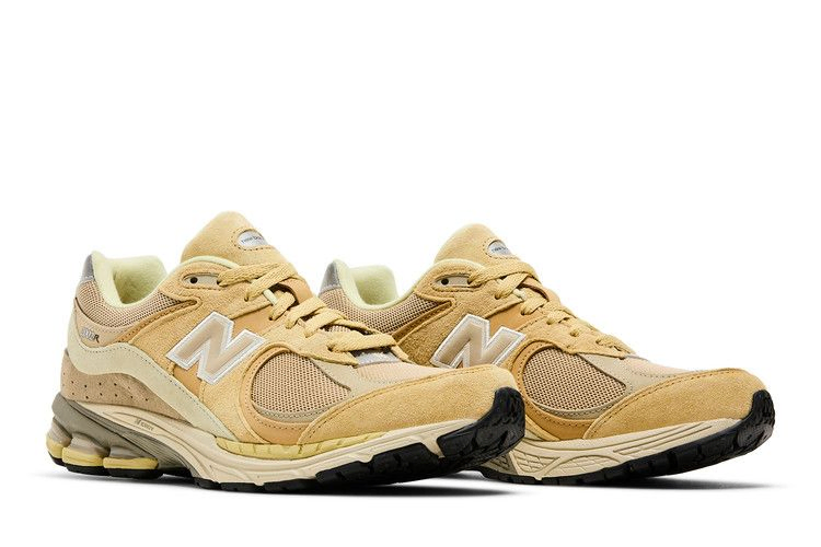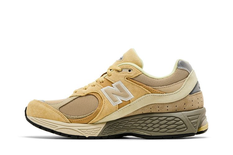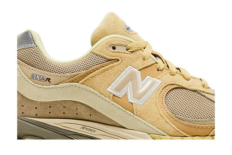 Модель AURALEE x New Balance 2002R 'Sand', созданная в сотрудничестве с токийским модным брендом, придает беговым кроссовкам в стиле ретро тональный оттенок. Верхняя часть, выполненная из вентилируемой сетки с накладками из замши, дополнена желтыми и бежевыми тонами. Светоотражающие серебряные акценты расположены на носочной части и пятке, а логотип N украшает четверть панели. Кроссовки опираются на двухцветную промежуточную подошву N-ergy от New Balance, а под пяткой контрастно выделяется шалфейно-зеленый цвет.
