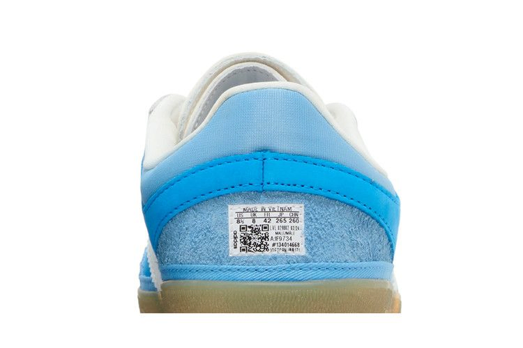 Модель Bad Bunny x adidas Gazelle Indoor "San Juan" вдохновлена солнечным небом и пляжами родного города исполнителя реггетона. Яркий оттенок синего цвета украшает кожаный верх с перфорацией и асимметричной накладкой из ворсистой замши на передней части стопы. Помимо белых кожаных полос, элементы брендинга включают в себя ярлык размера на замшевой панели пятки и надпись "adidas San Juan", выполненную золотой фольгой, на боковой стороне. Подошва кроссовок выполнена из полупрозрачной резины.- Артикул: IF9734