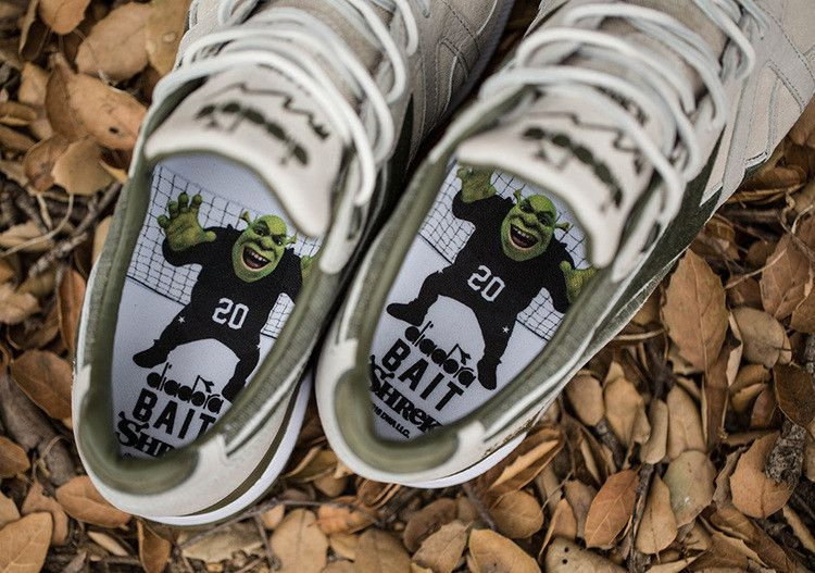 Модель BAIT x Dreamworks x N9000 'Shrek' одевает культовый силуэт N9000 от Diadora в цвета анимационного огра из Dreamwork как дань 15-летию фильма. Замшевая конструкция премиум-класса включает в себя накладки из кожи с эффектом галстука и панели из итальянского холста с эффектом нагрева на боковых стенках, а серые и оливковые аппликации дополняют образ Шрека. Кроссовки стоят на амортизирующей подошве из EVA и резиновой подошве высокой плотности, на которой красуются детали из соломы. Лимитированный выпуск также включает в себя индивидуальную стельку и три варианта кожаной шнуровки.