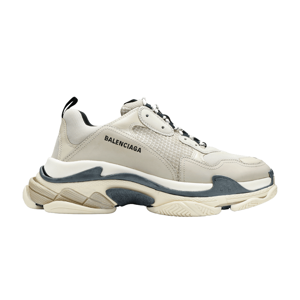 Возглавляемый легендарным модельером Демной Гвасалией, бренд Balenciaga выбрал новое современное направление, создав кроссовки Triple S, ставшие символом прогрессивного спортивного стиля. В этом выпуске кроссовки выполнены из сетки, нубука и кожи Vanille, со шнурками в походном стиле и двойными завязками. Фирменный значок на язычке из синтетики и вышитый размер по краю носка сохранены. Трехслойная резиновая подошва с эффектом поношенности создает ощущение винтажности.